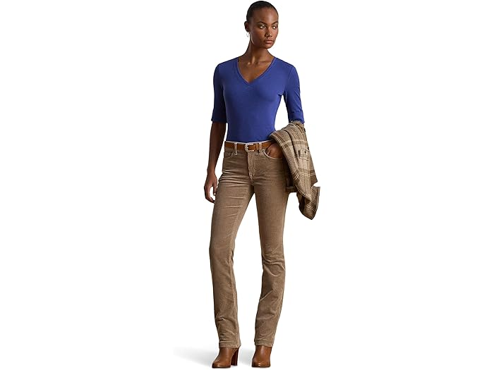 Stretch Cotton Elbow-Sleeve V-Neck Tee
