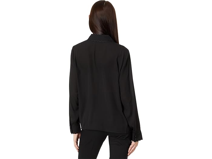 Long Sleeve Scalloped Button-Down Blouse
