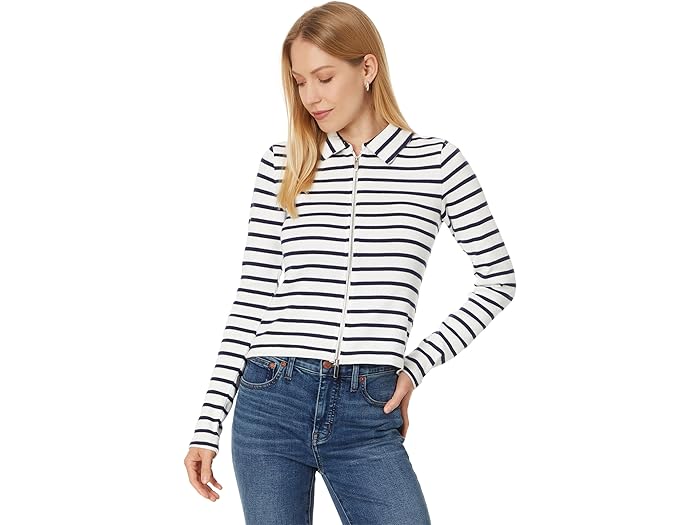 - Timeless design meets modern functionality in the Madewell® Grill Long Sleeve Zip Top – a laid-back essential with an effortlessly chic edge. Featuring a classic collared neck and trendy striped print, this top brings a polished vibe to your everyday style. The zippered front closure allows for easy layering and added versatility, while the long sleeves provide cozy comfort.