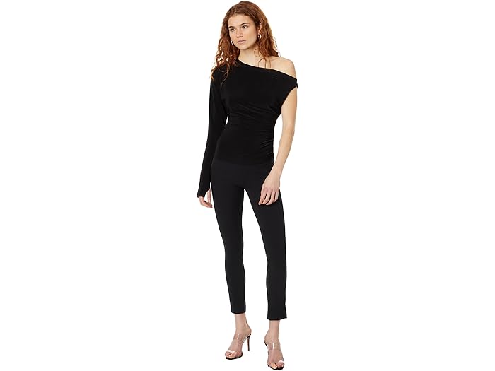 One Sleeve Drop Shoulder Side Drape Top