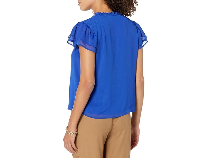 Smocked Shoulder Tie Neck Blouse